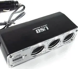Hot 3 Way Multi Socket Car Cigarette Lighter Splitter USB Plug Charger DC 12V/24V Triple Adapter with USB Port BX