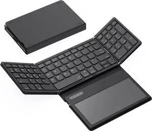 Foldable Bluetooth Keyboard with Touchpad, Portable PU Leather Wireless Travel Keyboard for Windows, iOS, Android, Mac,BLACK