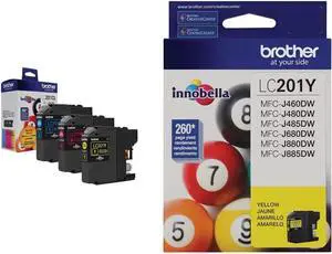 Brother Genuine Standard Yield Color Ink Cartridges, LC2013PKS + Brother LC201Y Standard Yield Yellow Ink Cartridge