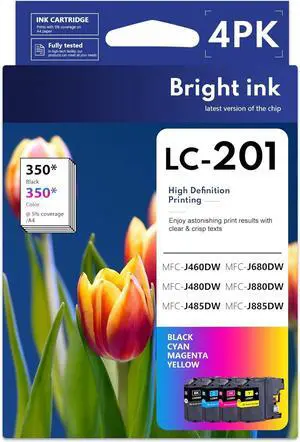 LC201 LC 201 Ink Cartridge High Yield Remanufactured Replacement for Brother MFC-J460DW MFC-J480DW MFC-J485DW MFC-J680DW MFC-J880DW MFC-J885DW Printer 4Pack (1Black 1Cyan 1Magenta 1Yellow)