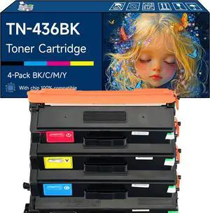 TN436 Toner Cartridge Set 4 Pack(with chip) Compatible Replacement for Brother tn436bk tn433 tn431 tn 436bk Toner for MFC-L8900CDW HL-L8360CDW HL-L8260CDW MFC-L8610CDW Prints