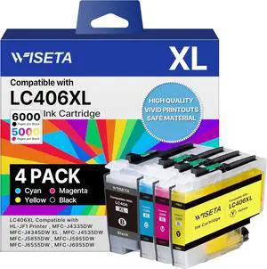 LC406 Ink Cartridges for Brother Printer Compatible Replacement for Brother LC406XL LC406 Ink Cartridges for MFC-J4335DW J4345DW J4535DW J5855DW J5955DW J6555DW J6955DW Printer (4 Pack)