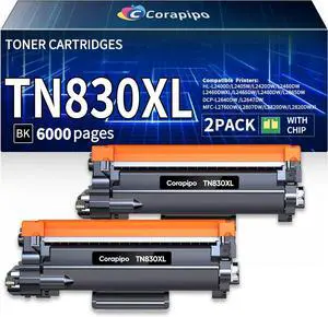 with Chip TN830XL Toner Cartridges Compatible Replacement for Brother TN830BK TN-830 XL Work with DCP-L2640DW HL-L2460DW MFC-L2820DW HL-L2400D HL-L2405W HL-L2865DW Printer Toner (2 Black)