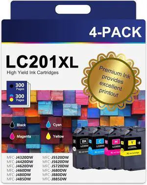 LC201 LC201XL Ink Cartridges High Yield 4 Pack Replacement for Brother 201 LC201 XL MFC-J480DW MFC-J680DW MFC-J880DW MFC-J485DW MFC-J4620DW MFCJ5720DW Printer (BK/C/M/Y)