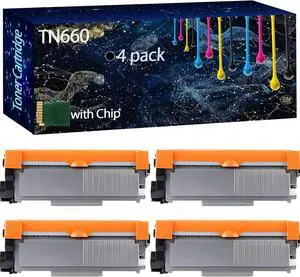 TN660 Replacement Toner Cartridge Compatible for Brother MFC-L2705DW MFC-L2707DW MFC-L2720DW MFC-L2740DW Printers, Bright Colors and Clear Printing (4 Pack Black)