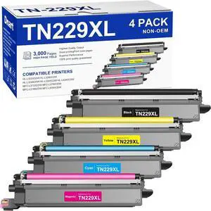 Snowflake TN229 Toner Cartridges 4 Pack Compatible TN2294PK Black Cyan Magenta Yellow Toner Replacement for Brother TN-229 TN229 B/C/M/Y MFC-L3780CDW MFC-L3720CDW HL-L3220CDW.