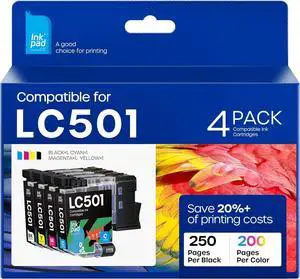 COMBUY LC501 Ink Cartridges 4-Pack Standard Yield Compatible for Brother LC501 Ink Cartridges LC501BK LC501C LC501M LC501Y use with Work Smart MFC-J1260DW, MFC-J1360DW and MFC-J1410DW Printers