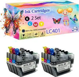 LC401 Ink Cartridges High Yield, Compatible with Brother MFC-J1010DW MFC-J1012DW MFC-J1170DW Printers, Crisp Text, Smooth Printing (with Chip) (2 Set)