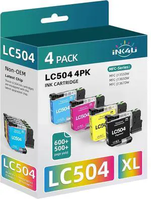 INK4U Compatible LC504 LC504XL Ink Cartridges Replacement for Brother LC504 Ink Cartridges for Brother Printer MFC-J1355DW, MFC-J1365DW, MFC-J1367DW Printer (Black Cyan Magenta Yellow, 4 Pack)
