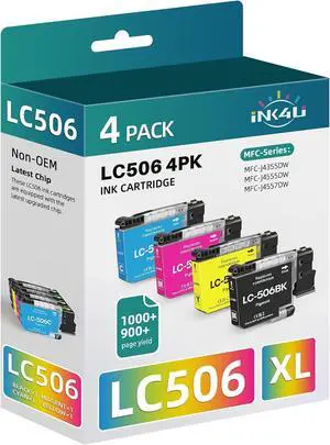 INK4U Compatible LC506 LC506XL Ink Cartridges Replacement for Brother LC506 Ink Cartridges for Brother Printer MFC-J4355DW, MFC-J4555DW, MFC-J4557DW Printer (Black Cyan Magenta Yellow, 4 Pack)