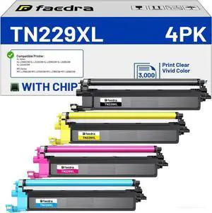 Faedra (with Chip) Compatible Toner Cartridges for Brother TN229XL TN229 XL Replacement for MFC-L3720CDW Toner for Brother MFC-L3780CDW HL-L3220CDW HL-L3280CDW Toner (4 Pack)