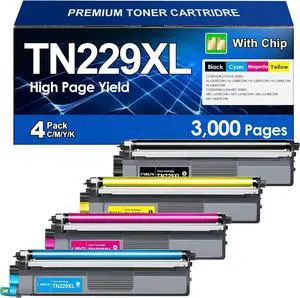 TN229XL Toner Cartridges- TN229 Toner Replacement 4 Pack for TN229 TN229XL TN229BK Toner Cartridges to Work with MFC-L3780CDW MFC-L3720CDW HL-L3280CDW HL-L3220CDW HL-L3295CDW Laser Printers (BK/C/M/Y)