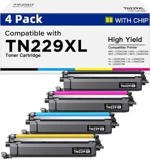 TN229XL Toner Cartridges Replacement Compatible for Brother TN 229XL TN-229XL TN-229 Work with MFC-L3720CDW MFC-L3765CDW MFC-L3780CDW MFC-L8395CDW Printers (4Pack, B/C/M/Y)