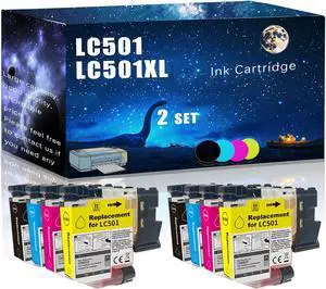 LC501 LC501XL Compatible Ink Cartridge Replacement for Brother High Yield Compatible MFC-J1260W MFC-J1360DW MFC-J1410DW Printers, Meet Printing Needs (2 Set)