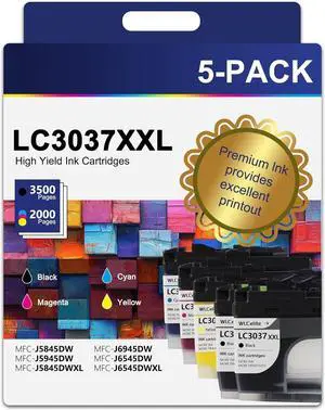 LC3037 LC3037XXL Ink Cartridge High Yield 5 Pack Replacement for Brother 3037 LC3037 LC-3037 XXL LC3037XXL MFC-J5845DW MFC-J5945DW MFC-J5845DW XL MFC-J6945DW MFC-J6545DW Printer (2BK/1C/1M/1Y)