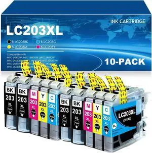 10PK 203XL Ink Cartridges Replacement for Brother LC201 LC203 XL LC203XL for MFC-J480DW MFC-J485DW MFC-J880DW MFC-J460DW MFC-J4620DW MFC-J4420DW MFC-J5520DW MFC-J680DW Printers(10 Pack)