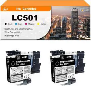 LC501 Replacement Ink Cartridge Compatible for Brother MFC-J1260W J1360DW J1410DWPrinters 2 Black