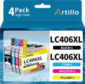 LC406 Ink Cartridges for Brother Printer Compatible for Brother LC406 Ink Cartridges LC406XL LC 406 406XL for Brother MFC-J4335DW MFC-J5855DW MFC-J4535DW MFC-J6555DW MFC-J6955DW Printer(4 Pack)