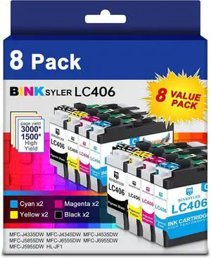 8-Pack LC406 Ink Cartridges for Brother LC406 LC406XL Ink Work for Brother Printer MFC-J4335DW MFC-J4345DW MFC-J4535DW MFC-J5855DW MFC-J5955DW MFC-J6555DW MFC-J6955DW (2BK/2C/2M/2Y)