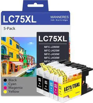 LC75 Ink Cartridges (2BK/C/M/Y 5-Pack) Compatible for Brother LC75BK LC75XL Ink Replacement for Brother LC-75 LC71 LC79 XL Ink Cartridges Work for MFC-J6510DW MFC-J6710DW MFC-J6910DW MFC-J280W Printer