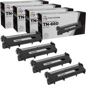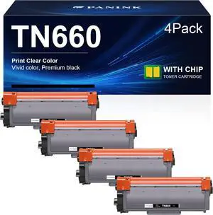 Brother TN660 Black Toner Cartridge, Compatible High Yield for TN630, 4 PK