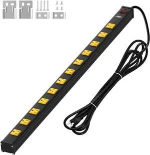 CRST Heavy Duty Surge Protector Power Strip Wide Spaced 12-Outlet 15 Feet Long Extension Cord with Mounting Brackets 15A Circuit Breaker 1800 Joules