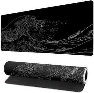 Long Gaming Mouse Pad 31.5 x 11.8 inches Extended Anime Mousepad Large Mouse Mat with Non-Slip Base Full Keyboard Mat with Stitched Edges for Gaming and Office (Black Wave)