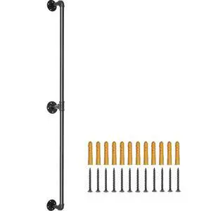 Pipe Stair Handrail, 6FT Staircase Handrail, 440LBS Load Capacity Carbon Steel Pipe Handrail, Industrial Pipe Handrail with Wall Mount Support, Round Corner Wall Handrailings for Indoor, Outdoor