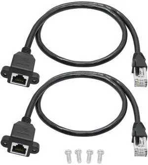 2Pcs Cat6 Ethernet Extension Cable 1FT, RJ45 Male to Female Ethernet Panel Mount with Screw Extension Shielded Cable, Compatibility Cat5e, Cat5, for PC, Laptop, Router, Smart TV, Network Switch etc