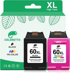 COLORETTO 60XL Ink Cartridges for HP Deskjet F4480 F4435 F4280 F4235 F4200 D2530 D2545 PhotoSmart C4600 C4680 C4700 C4795 D110a Envy 100 120 Remanufactured for hp 60 Ink hp60 XL 1Black 1Color 2-Pack