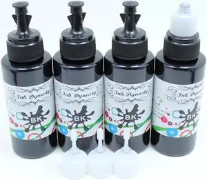 Ink Dynasty 4X 100ml Premium Black UV Resistant Photo Dye Ink Refill Kit for All Canon Refillable Printer Cartridge CIS CISS Total 400ml
