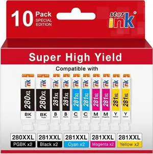281XXL 280XXL Compatible Replacement for Canon 280 281 Ink Cartridges for Canon TR8620a TR8620 TR8520 TR7520 TR8600 TS6120 TS6220 TS6320 TR8500 Printer, 10-Pack(2PGBK/2BK/2C/2M/2Y)