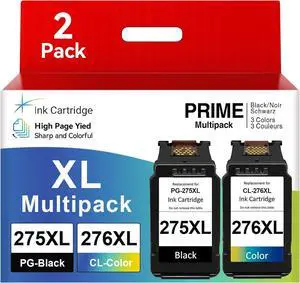 PG-275 XL/CL-276 XL High Yield Compatible for Canon 275XL 276XL Ink Cartridge Compatible for Pixma TS3720 TR4720 TR4700 TR4723 TR4722 TS3500 TS3520 TS3522 Printer (1 Black 1 Color)