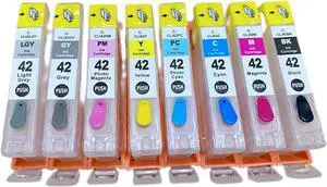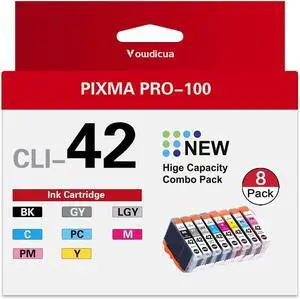CLI-42 Ink Cartridges 8-Pack High Capacity Compatible CLI 42 Ink Cartridges Replacement for Canon PIXMA PRO-100 Printer, (BK/C/M/Y/PM/PC/GY/LGY)