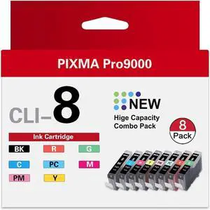 CLI-8 8 Color Multi Pack Ink Tank (8-Pack,1BK 1C 1M 1Y 1PC 1PM 1R 1G) Vowdic Compatible Replacement for Canon CLI-8 Ink Cartridges with Pixma Pro9000 and Pro9000 Mark II Printer