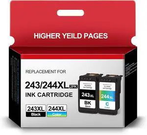 243XL and 244XL Combo Pack Ink Cartridge for Canon Printer Ink PG-243 CL-244 for Canon PG243 CL244 XL Compatible for TS3122 MX492 MG2522 MG2922 MG2420 TR4520 Printer (1 Black 1 Color)