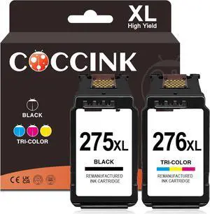 COCCINK 275XL 276XL for Canon Pixma TS3722 Ink Cartridges Pixma TS3720 TS3700 TR4720 TR4722 TR4700 TR4725 TS3522 TS3520 TS3500 Printer Remanufactured for Cannon Ink 275 276 XL PG-275 (1 Black 1 Color)