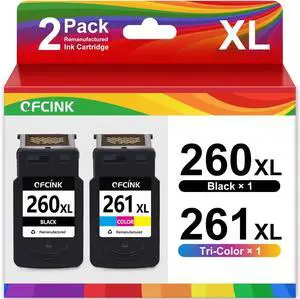 260XL 261XL Ink Cartridges Combo Pack Remanufactured for Canon 260 and 261 Ink Cartridges Works with Canon TS6420 TR7020 TR7022 TS5300 TS5320 Printer CL-261XL PG-260XL Ink Cartridge (1 Black,1 Color)