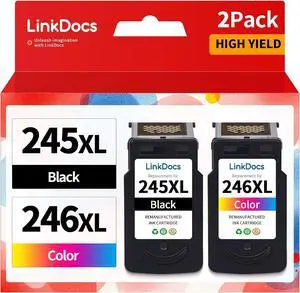 LinkDocs 245XL 246XL Combo Pack Ink Cartridges Replacement for Canon PG-245XL CL-246XL PG-243 CL-244 Work for Pixma TS3120 MG2520 MX492 TR4520 TS202 MG2525 MG3022 Printer (2 Pack, Black & Tri-Color)