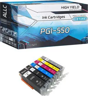 ALLC Compatible for Canon PGI-550 CLI-551 Ink Cartridges Work for Canon MG7150 MG7550 1p7250 MX925 MX725 IX6850 IP8750 Printers, with Chip, High Yield 460 Pages, Clear Printing (1 Set)