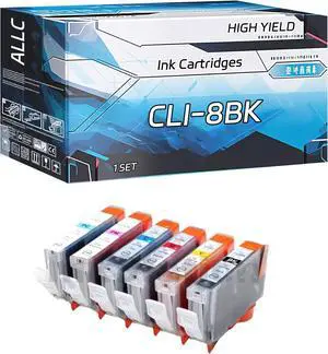 ALLC Compatible for Canon CLI-8BK Ink Cartridges Work for Canon IP6600D IP6700D MP960 MP970 Printers, with Chip, High Yield 800 Pages, Clear Printing (1 Set)