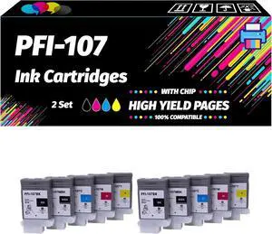 Compatible with Canon PFI-107 Ink Cartridges Work for Canon IPF770 IPF780 IPF670 IPF680 IPF685 IPF785 IPF681 Printers, High Yield 8500 Pages, Professional Printing with Chip (2 Set)