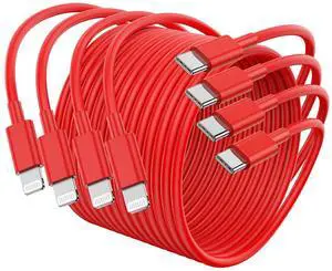 (4Pack Apple MFi Certified) USB C to Lightning Cable 6ft,Fast Charger Type C to Lightning Cord,Apple USB C Charging Cables for iPhone 14/13/13 Pro/12/12 Mini/12 Pro Max/11/X/XS/XR/iPad (Red)