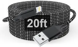 20FT 6M Extra Long iPhone Charger Cord [Apple MFi Certified] Braided Phone Charger Fast Charging USB to Lightning Cable for iPhone 14/13/12/11, iPad - Black