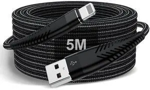 Extra Long iPhone Charger Cable 16ft/5M, Apple MFi Certified Lightning Cable 15ft, Fast Charging Nylon Braided iPhone Charging Cord for Apple iPhone 13 Pro Max/13/12mini/11 Pro/X/XS/XR/8 Plus/iPad