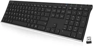 Wireless Keyboard-2.4G Ultra Slim Quiet Full Size Matte USB PC Computer Keyboard,19 Multimedia Keys,Number Pad,Plug&Play,Lag-Free Ergo,Long Battery life for Desktop,Laptop,Smart TV,MAC,Windows,QWERTY