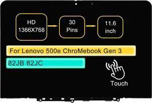 FirstLCD Replacement for Lenovo 500e Chromebook Gen 3 82JB 82JC 82JB0000US 82JB0001US 82JB0002US 82JB000WUS 5D11C95886 LCD Touch Screen Display Assembly 11.6" 1366x768