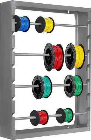 Wire Spool Rack Cable Distributor Wall Mounted Spool Display Rack Wire Holder with 4 Adjustable Rods for Electrical Industrial Storage Ribbon/Wire/Filament/Conduit, Gray