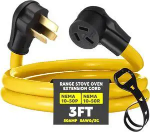 Relaxweex 3ft 10-50 50Amp Extension Cord Compatible with NEMA 10-50 Male Plug to 10-50 Female Receptacle, 50 A 3 Prong Electric Range Oven Stove Extension Power Cord, STW 8 AWG/3C Gauge, 250V, 12500W
