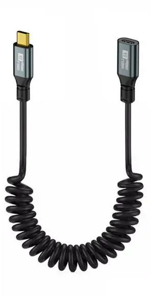 Stretch Coiled USB-C USB4 Cable 20Gbps 100W 8K for Laptop Keyboard Tablet Type-C Male to Female Power & Data Extension Cable